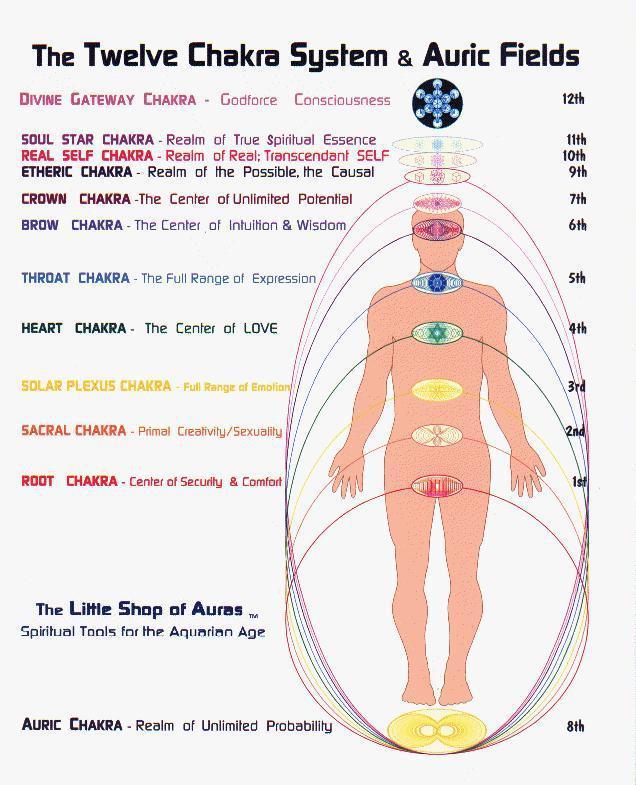 Der nächste Schritt auf unserer Tour durch das menschliche Energiesystem ist vielleicht der bedeutendste, da er genau beschreibt, wie die Aura aufgebaut ist und die Fülle des Flusses dieser Energie, die wir sind. Wie Lazaris sagt; „ Der Ort, in den Gott-Göttin-Alles-Was-Ist den Atem einhaucht, der zu dir wird, ist das zwölfte Chakra, der Sitz des Gotteskraft-Bewusstseins .“