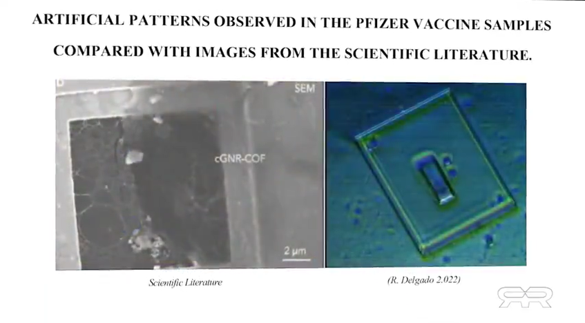Vergleich künstlicher Muster, die in Pfizer-Impfstoffproben beobachtet wurden, mit Bildern aus wissenschaftlichen Arbeiten