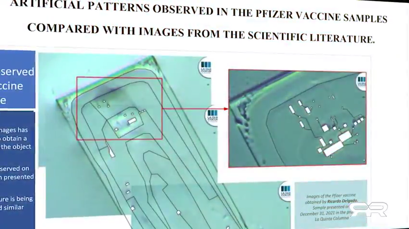 La Quinta Colmuna veröffentlichte kürzlich lichtmikroskopische Analysen und Schlussfolgerungen zu der seltsamen selbstorganisierenden Nanotechnologie , die in Pfizers mRNA-Impfstoff gefunden wurde . Das wissenschaftlich gut belegte Ziel, Nanotechnologie bei lebenden Menschen einzusetzen, um Netzwerke zu bilden, die mehrere Nanomaschinen steuern können, wird derzeit im Impfstoff gegen CoV-19 eingesetzt und ist der aggressivste Angriff auf die Menschheit in der aufgezeichneten Geschichte.